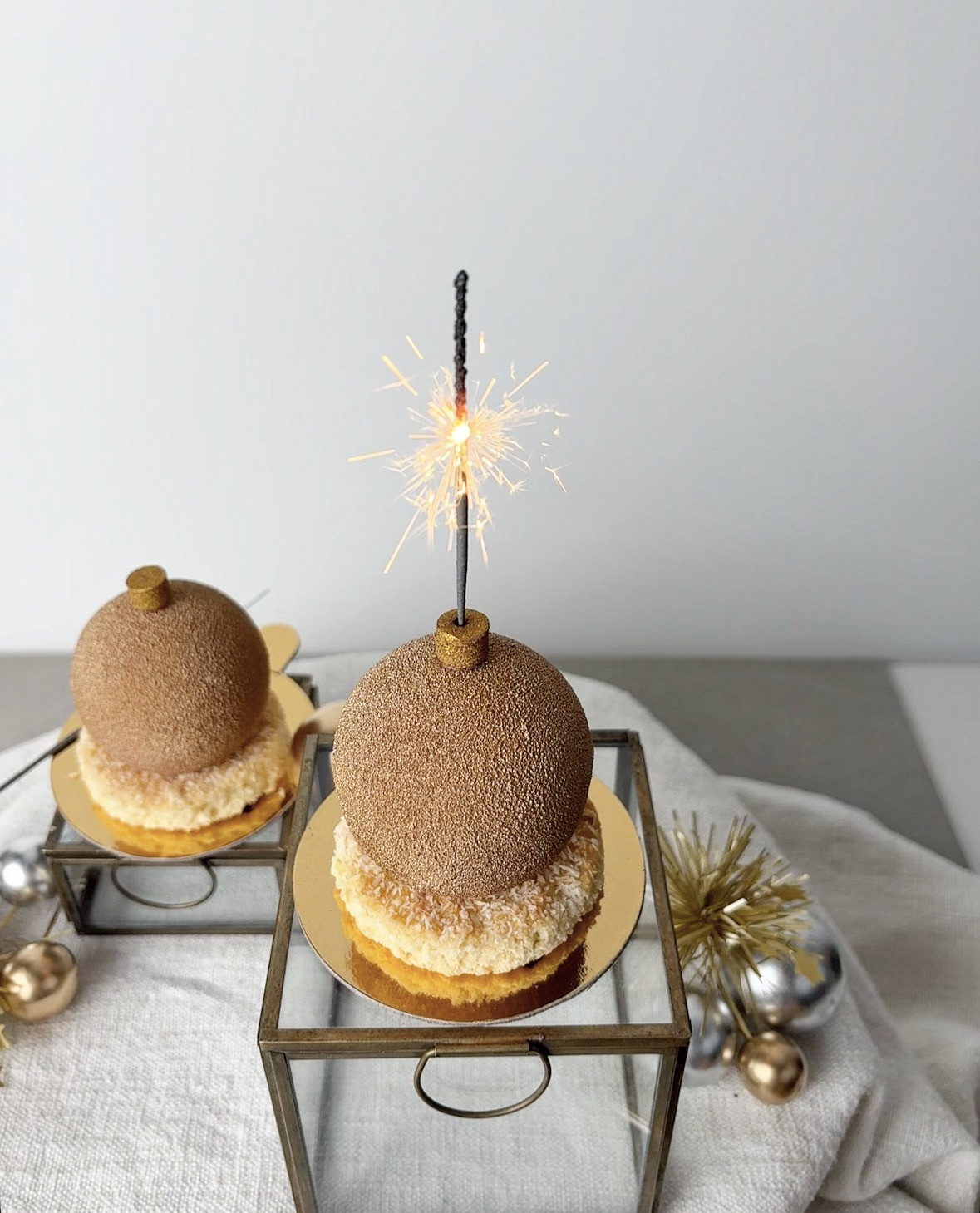 Mit vollmundigem Mandel/Kokosmousse und exotischem Guavekern auf saftigem Kokos-Mandelboden lässt sich das neue Jahr mit einem Knall einläuten.