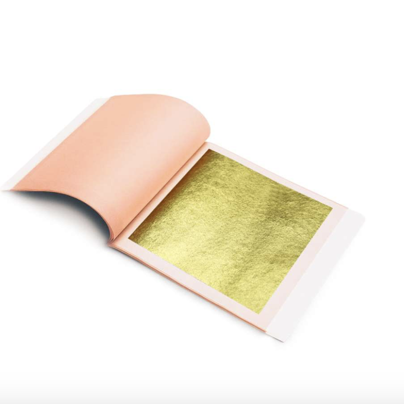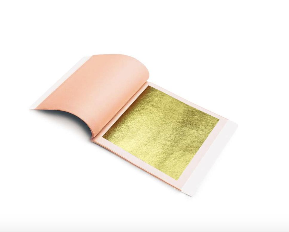 Das essbare Blattgold liegt auf einem Transferpapier gepresst zu je 10 Blatt im gebundenen Büchlein. Das Goldblatt selbst ist auf ein Seidenpapier gepresst und kann mit einer Schere in gewünschte Formate geschnitten werden.