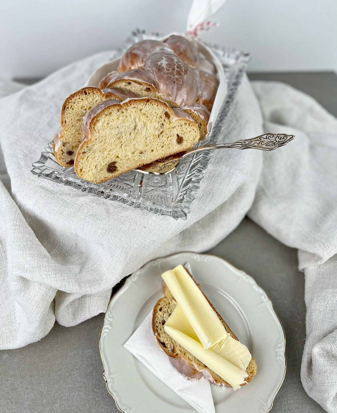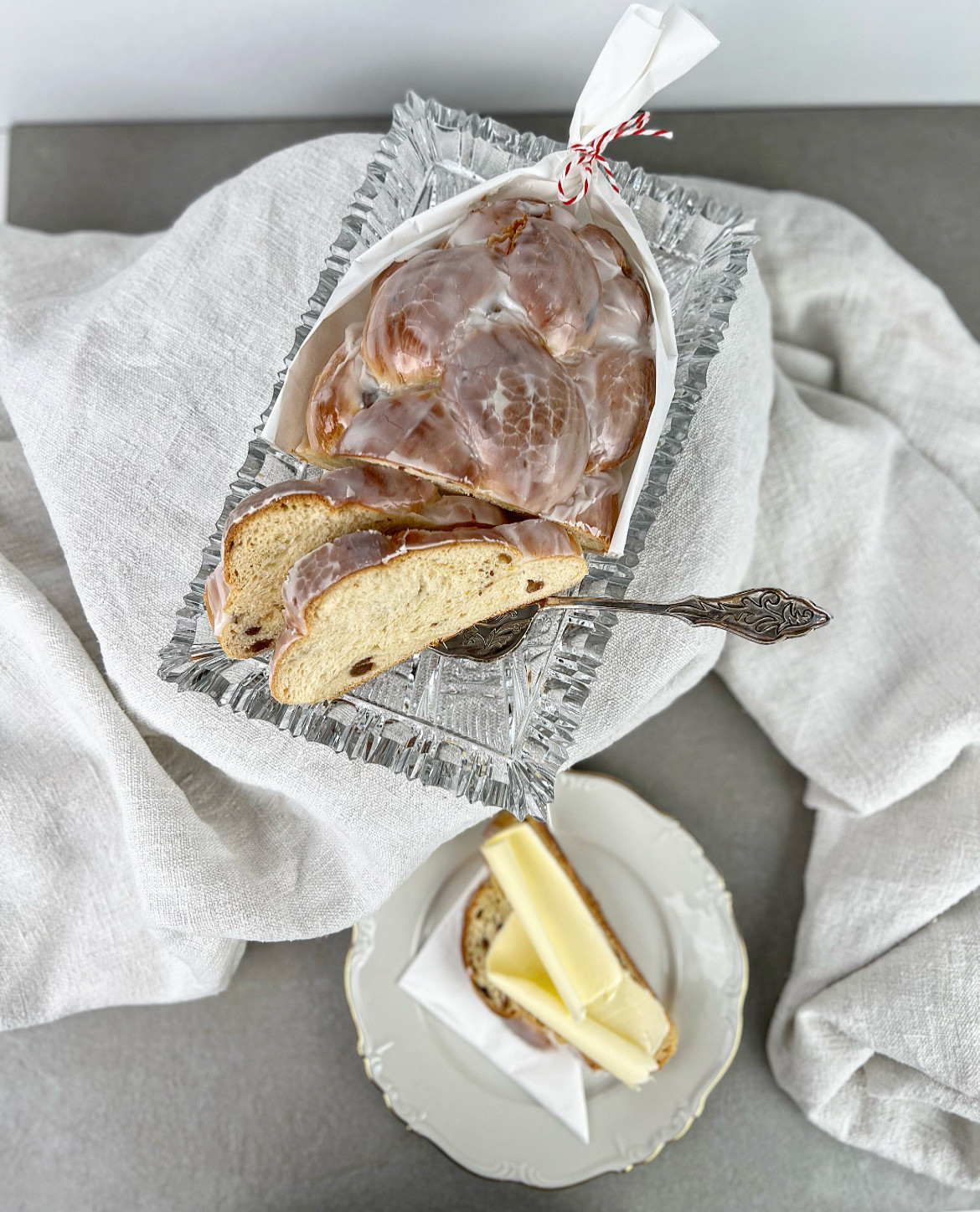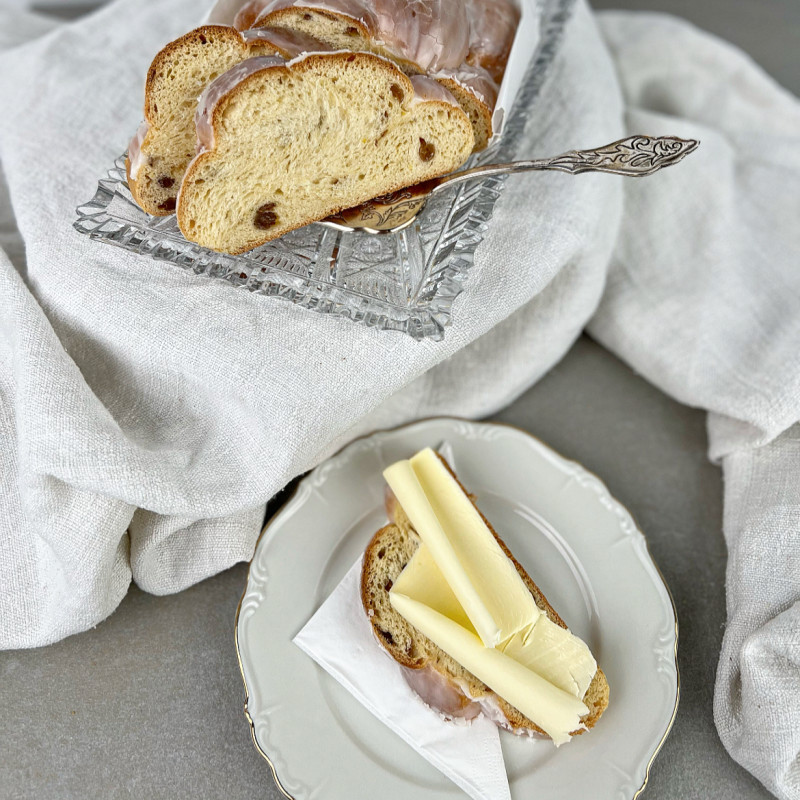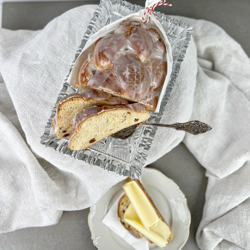 Von Hand hergestellt, aus rein natürlichen Zutaten und einer Glasur mit unbehandelten Zitronen, bleibt der Striezel besonders lange saftig.