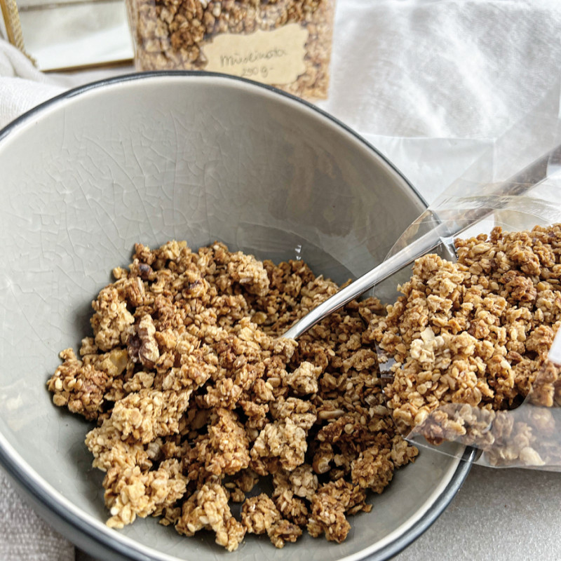 Unser Müslinator Müsli bildet die Basis für deine verschiedensten Müsli Variationen. Mische Bananen, Schokolinsen, Kokosflocken, Rosinen, Weintrauben oder frische Früchte darunter und kreiere dein Lieblingsmüsli.