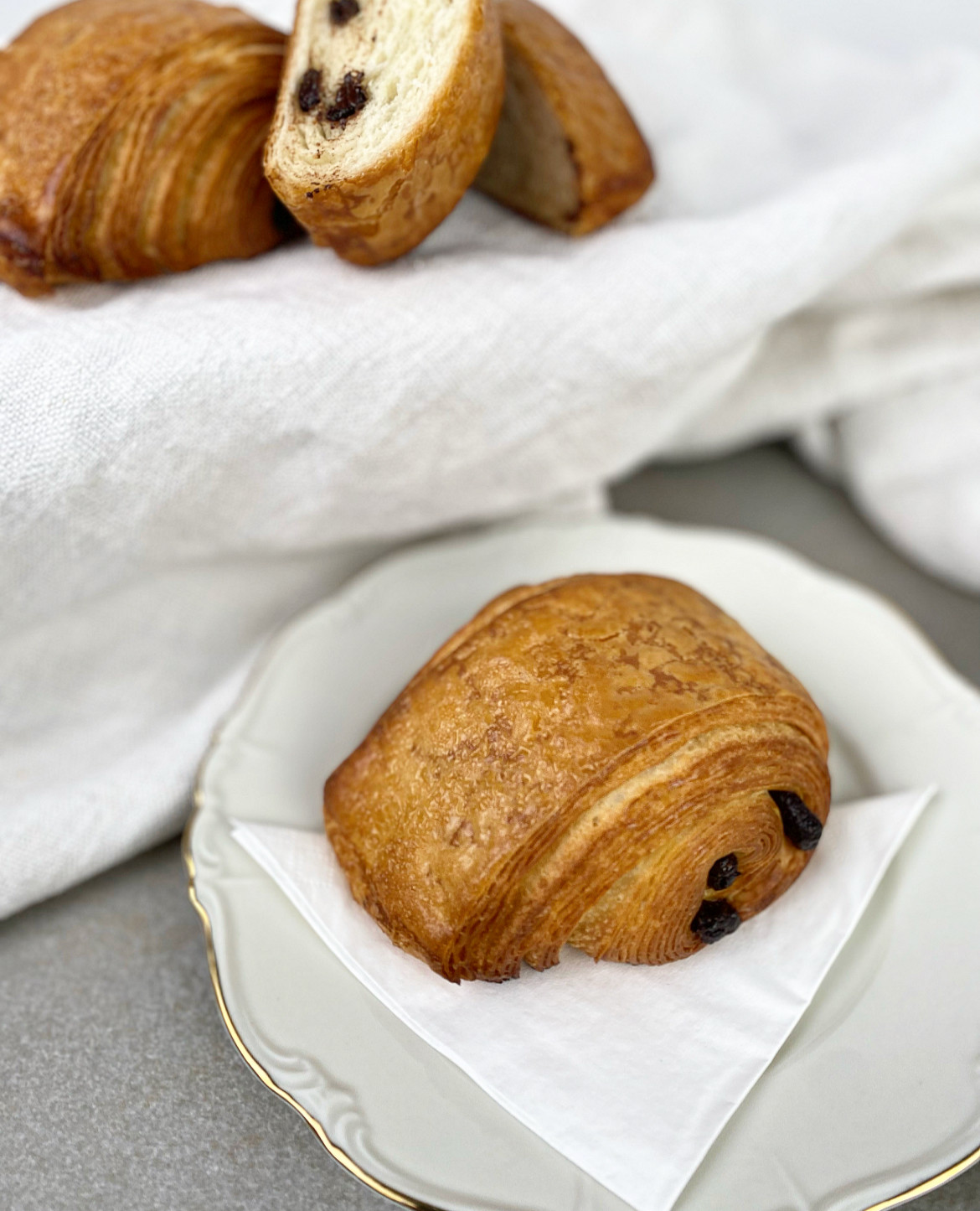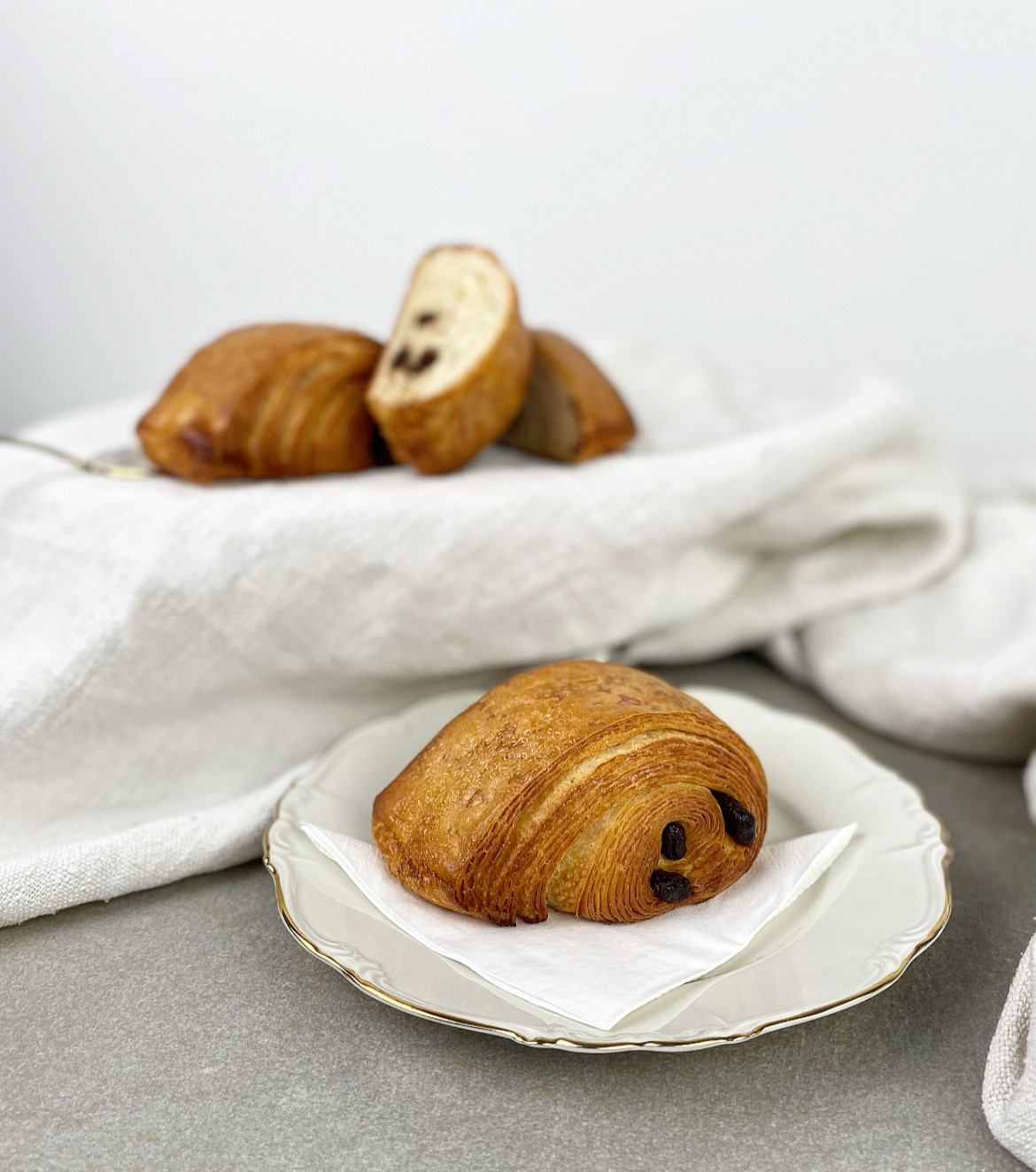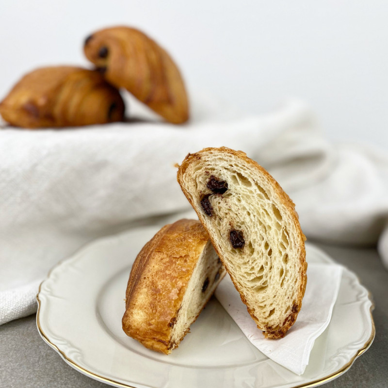 feinblättriges Schokoladencroissant mit hochwertiger Valrhona Schokolade.