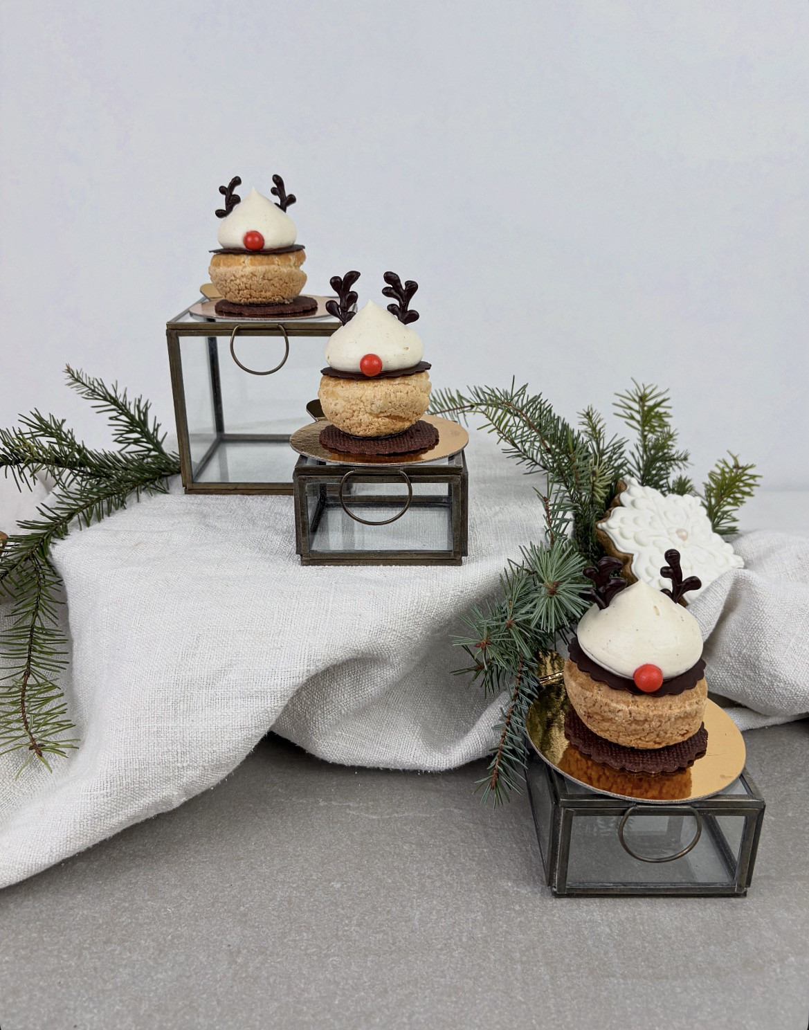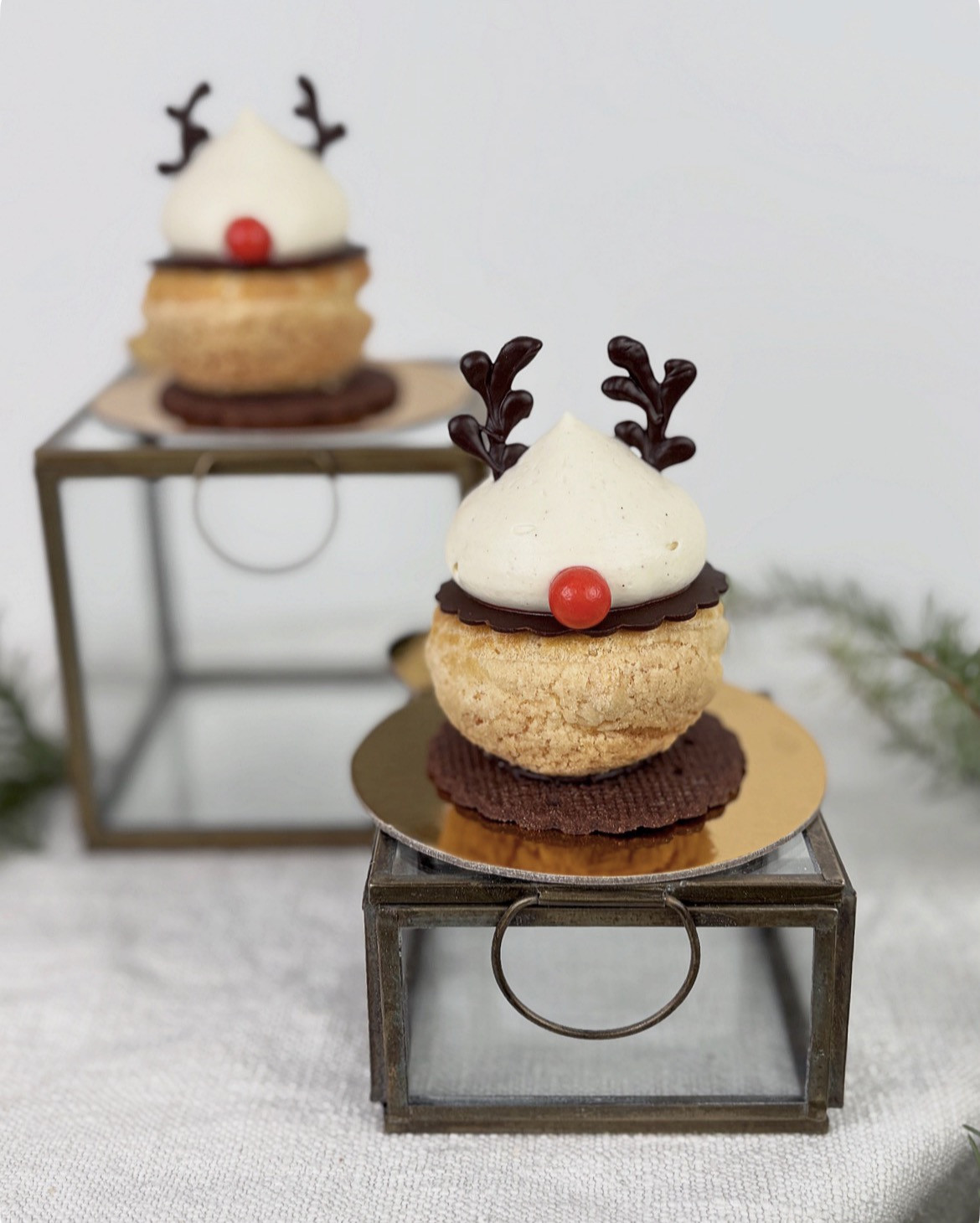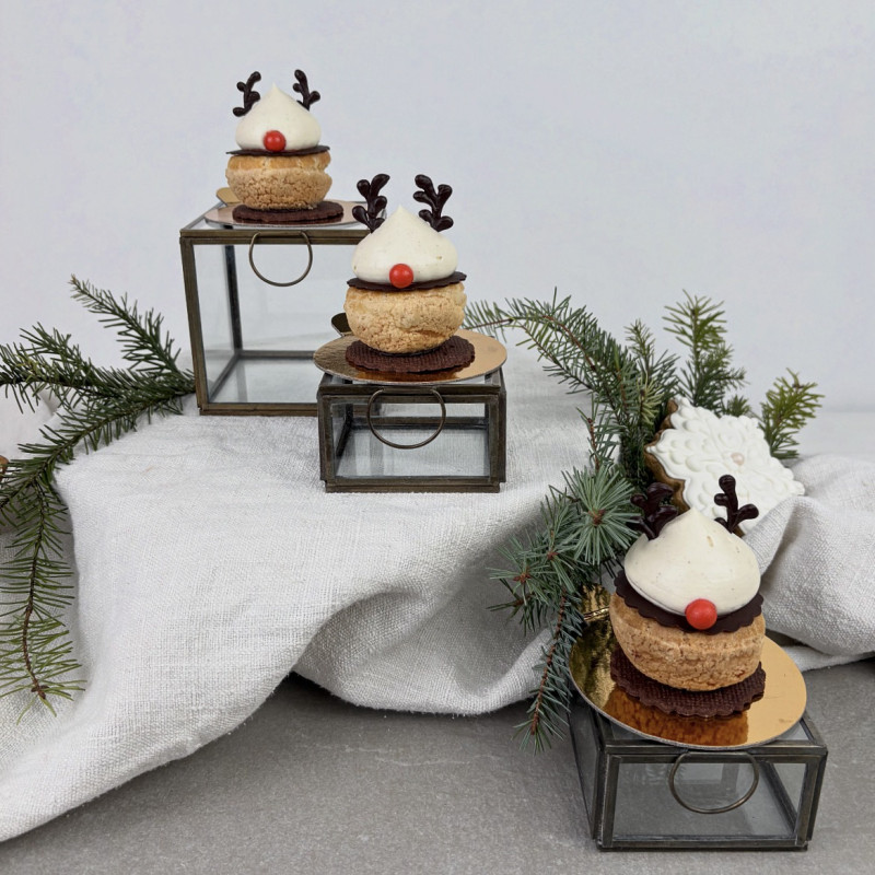gefülltes Choux (Brandteig) mit Marillenmousse und Marillenkern, verfeinert mit einer Tonkabohnen Creme und dekoriert wie der süße Rudolf
