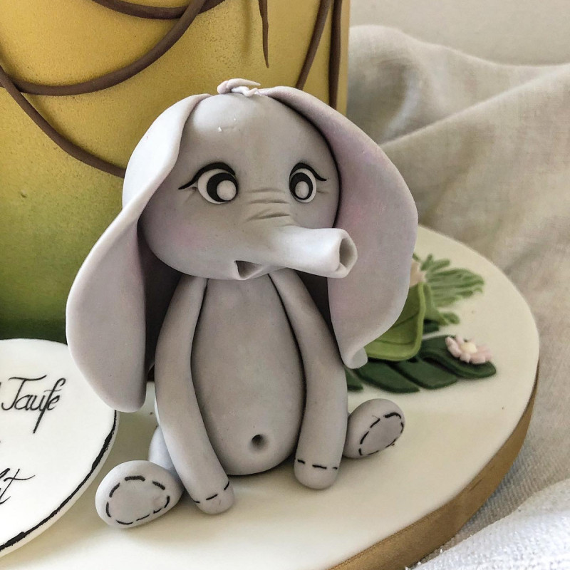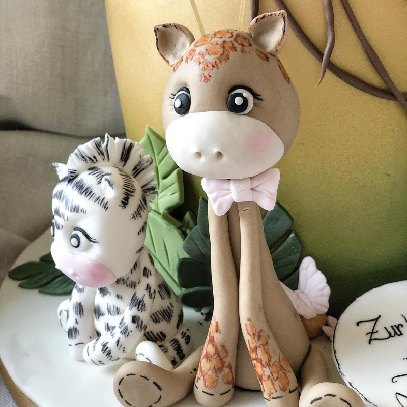 Das Highlight sind die handmodellierten Safari-Tiere, die mit viel Liebe zum Detail gefertigt werden. Ob niedliche Löwen, Elefanten, Giraffen oder Zebras – diese süßen Figuren machen die Torte zu einem echten Hingucker! Die Dekoration wird durch verschiedenen tropische Blätter, Lianen und natürliche Farben im Safari-Stil perfekt ergänzt.